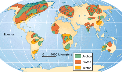 The map above shows both the major deposits and the ancient bedrock. Both the 2,500-million-year- old archons and less productive 1,600 to 2,500-million-year-old protons, that contain the diamond pipes. The diamonds in secondary deposits have been moved away from the pipes due to the erosion. Diamond trading is mainly concentrated in diamond centers around the world. The biggest trading centers are in Antwerp, Belgium and Ramat Gan, Israel. These diamond trading centers are united under the World Federation of Diamond Bourses (WFDB). The WFDB was founded in 1947 to unite all bourses and provide training in rough and polished diamonds, and other precious stones. This also produced a common set of training practices for all bourses. The WFDB provides a legal framework and convenes regularly to adopt common regulations for its twenty three diamond bourse members.