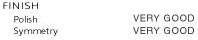 Finish: describes the quality of a diamond’s polish and symmetry. Polish: describes the quality of the surface condition. Symmetry: describes the size, shape and placement of the facets.
